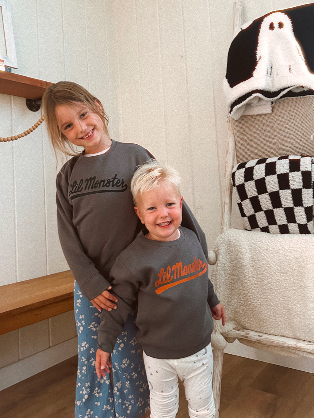 For the spooky sidekick to every Momster—this cozy crewneck lets your little one show off their mischief in style.