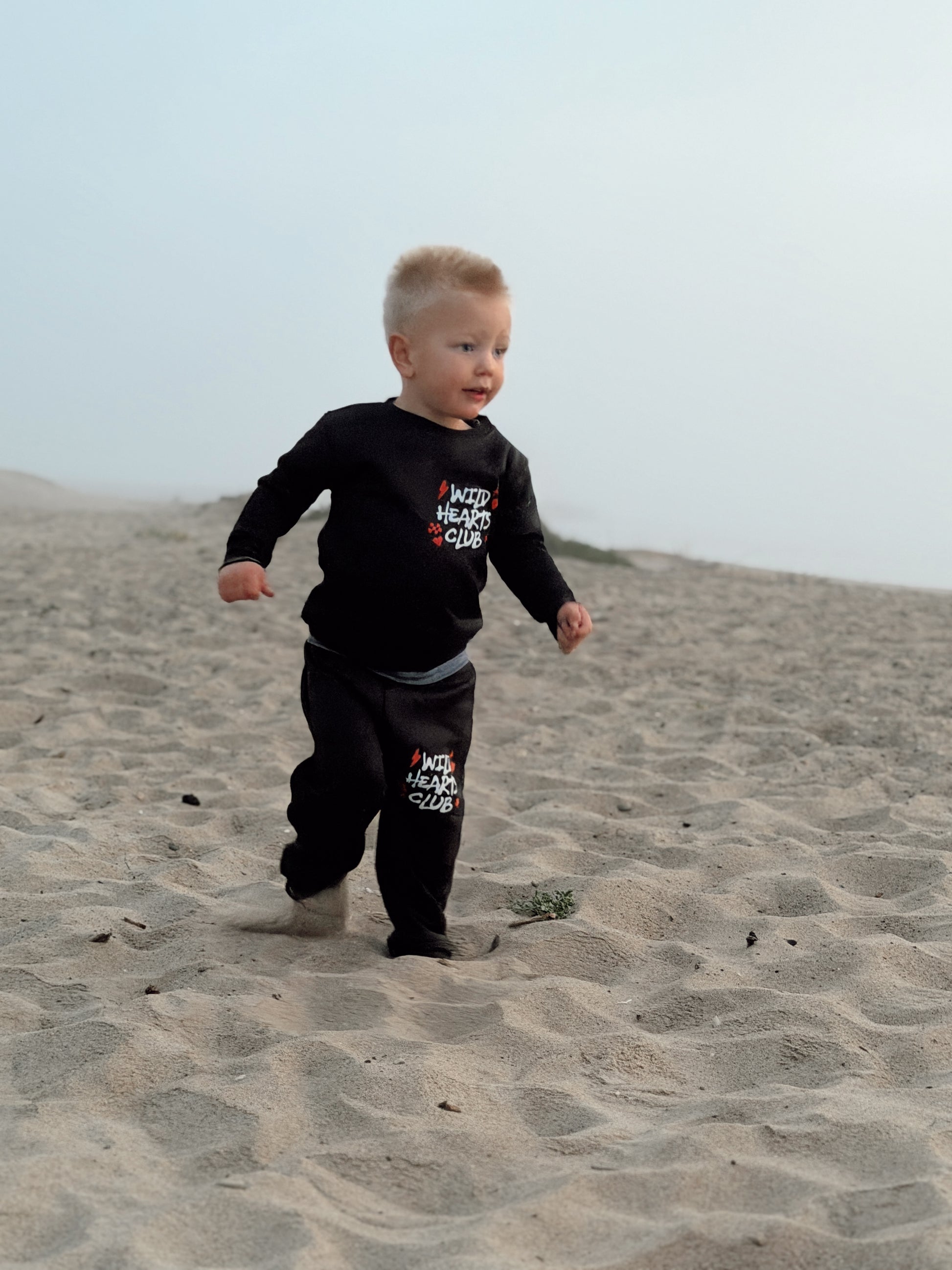 The Wild Hearts Club Set is a two-piece everyday essential designed for comfort, movement, and all-day wear. Made with soft, cozy fabric and an easy, relaxed fit, this matching top and bottom set is perfect for playdates, lounging, travel, and bedtime wind-downs.